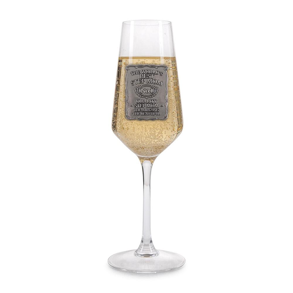 Personalized Champagne Glass Pewter Label Gift - 11 Designs Mom Sister